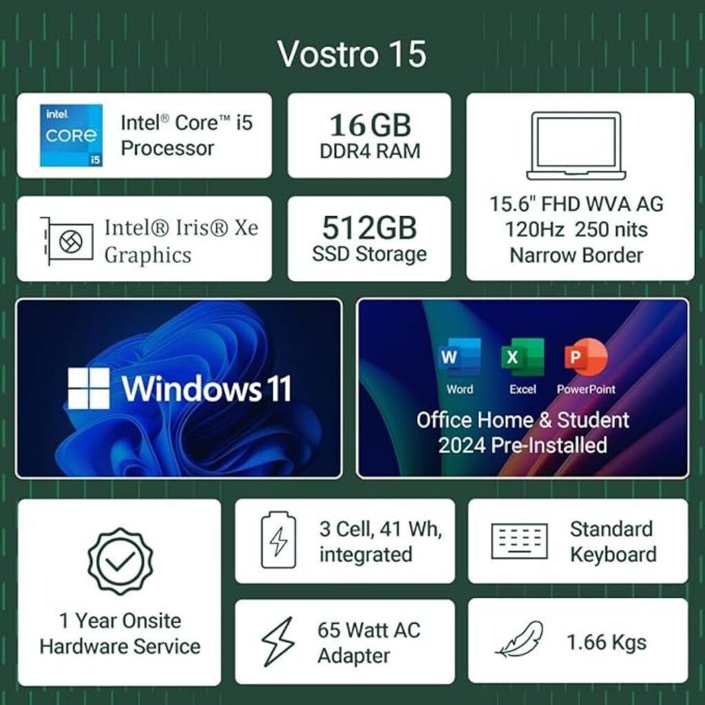 Overall, the Dell 15 (13th Gen Intel Core i5-1334U) offers an impressive combination of speed, style, and practicality. Its strong performance, crisp 120Hz FHD display, generous 16GB RAM, and ultra-fast SSD make it perfect for professionals, students, and home users who need a dependable machine for productivity and entertainment alike.