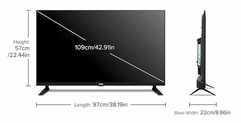The 109 cm (43-inch) screen size strikes the perfect balance for medium-sized living rooms or bedrooms. VW has optimized the display with OptimaX picture enhancement technology, delivering deeper blacks and more natural colors. Whether you’re watching a late-night thriller or a vivid nature documentary, the visuals remain sharp, immersive, and easy on the eyes.